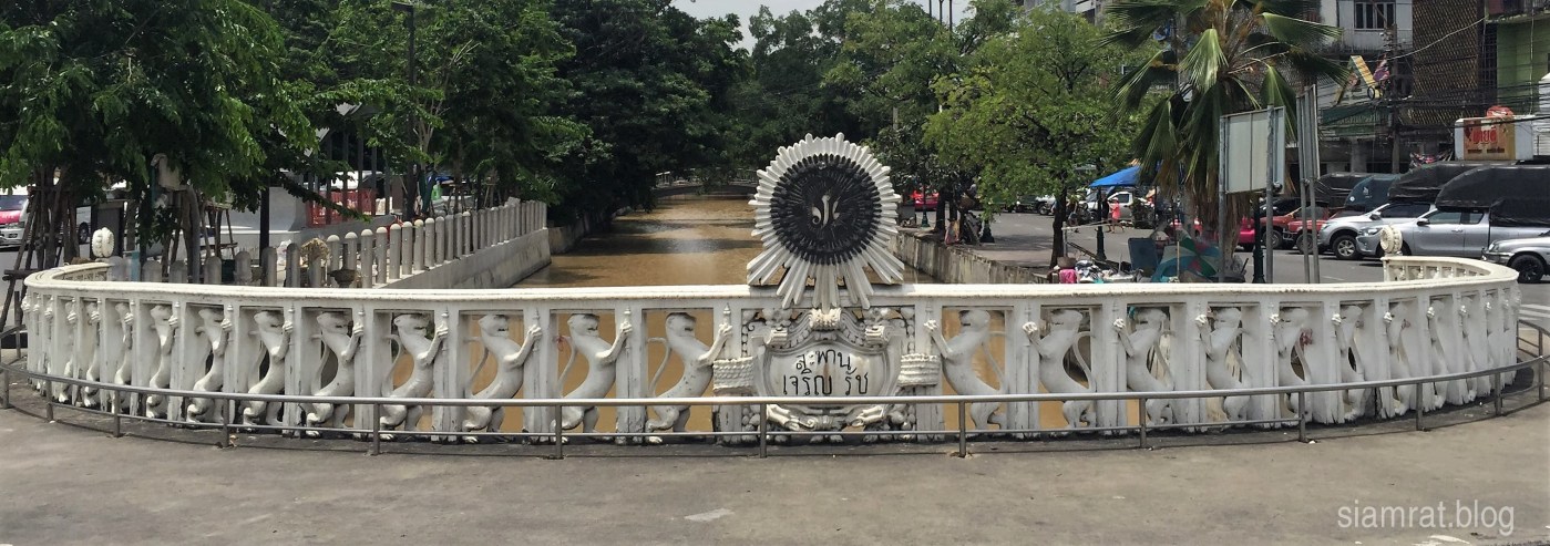 Saphan Chalerm Lar 56 is the most impressive of the remaining birthday bridges. It is located just north of the Siam Discovery Centre on Phaya Thai Road as the road crosses the Saen Saeb Canal. The bridge is notable for the four-headed white elephant pillars at each corner of the bridge. These were to commemorate the fact that King Chulalongkorn had attained the same age as his Grandfather Phra Phutthaloetla Naphalai (Rama II) who had been noted for having four white elephants. It must be said that to the modern eye they look strangely like ballistic missiles !