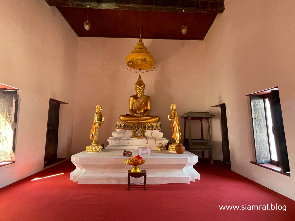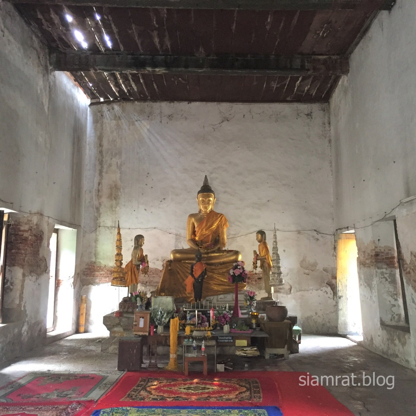 The local community still maintain the ubosot as a place of worship and meditation, the interior being kept clean and with a rather beautiful set of Buddha images set up at the western end.