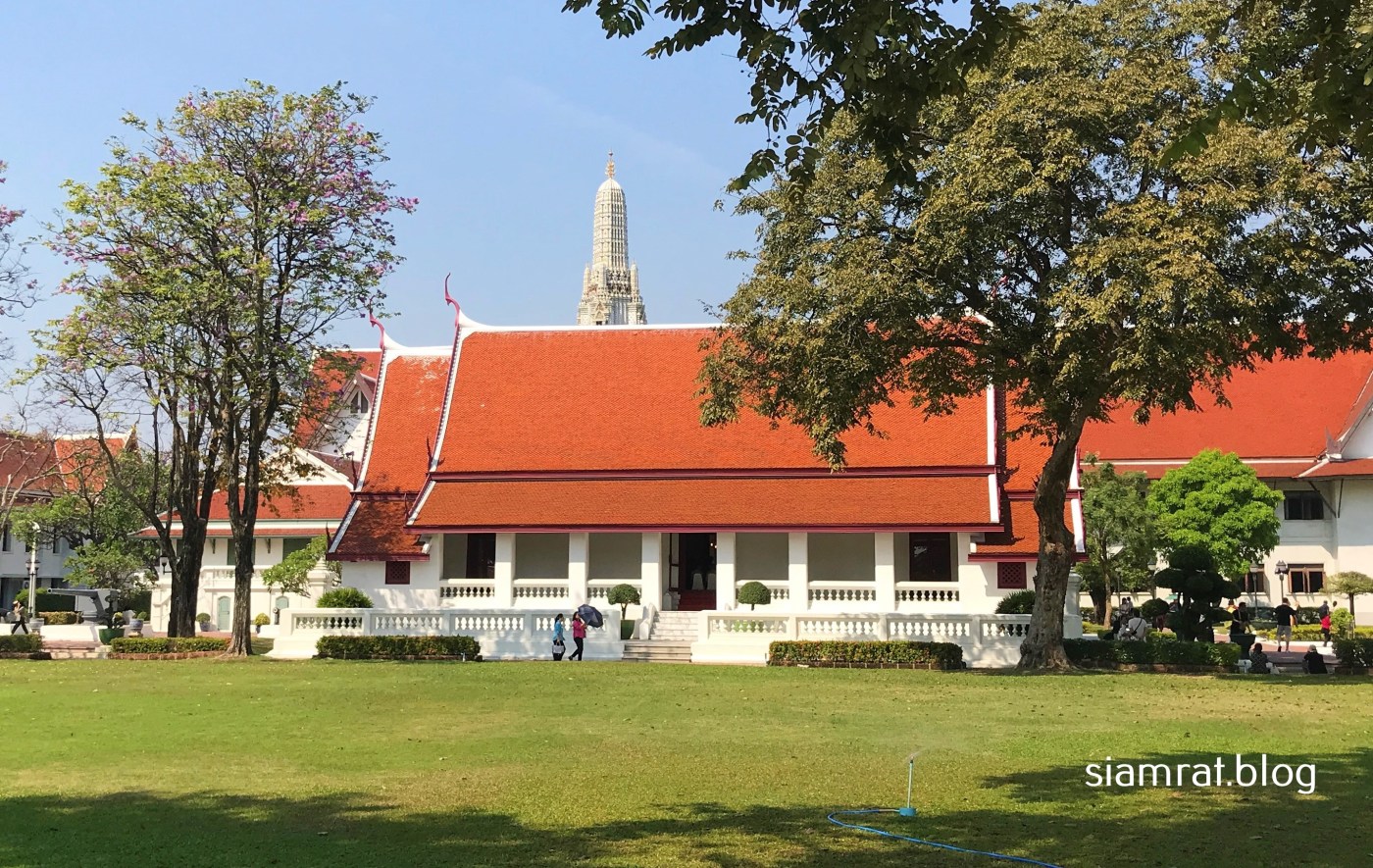 Visiting Wang Derm today, the original T-shaped palace building still stands. To the north is a traditional open-sided assembly hall known as Thong Phrarong where King Taksin would have held council with his nobles and conducted royal ceremonies. Originally this hall was completely made of wood but in the early twentieth century it was reconstructed with concrete.